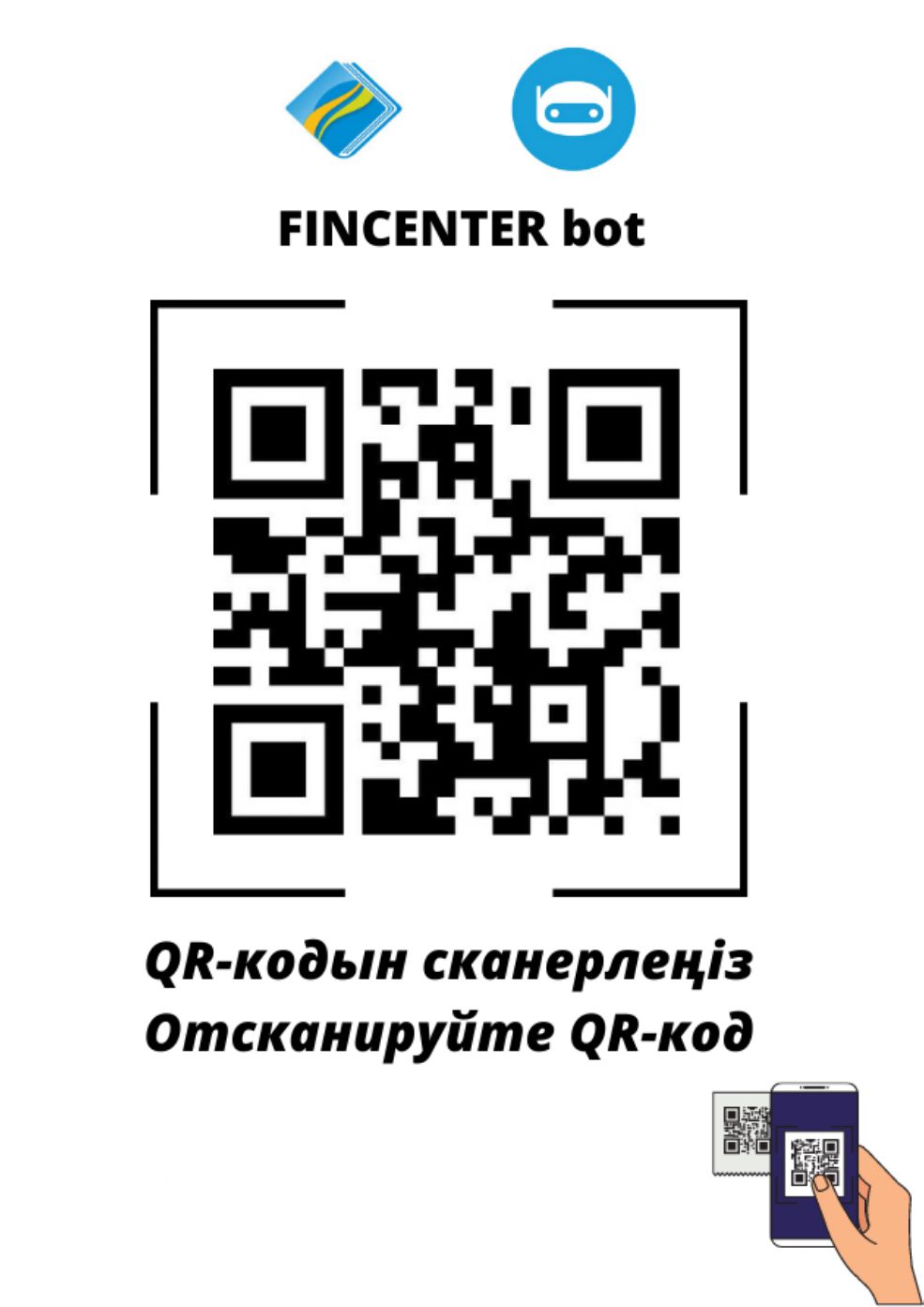 Используйте QR-код, чтобы перейти к bot Telegram FINCENTER и узнать об изменениях и дополнениях в законах об образовании в РК.