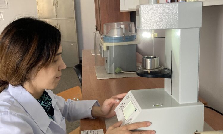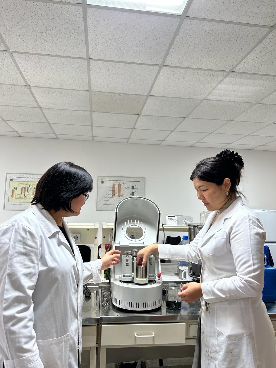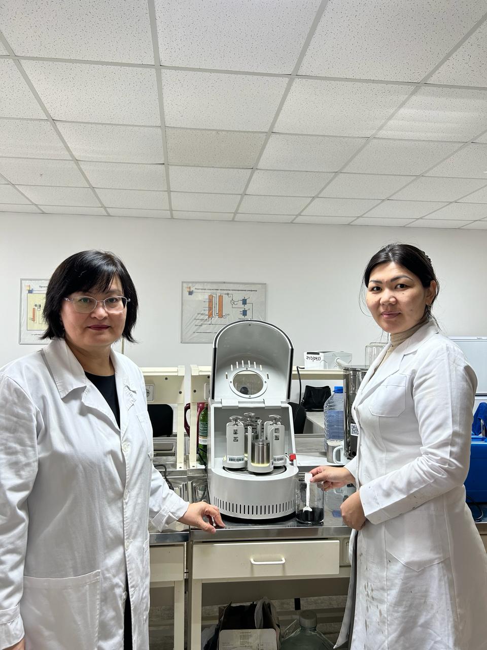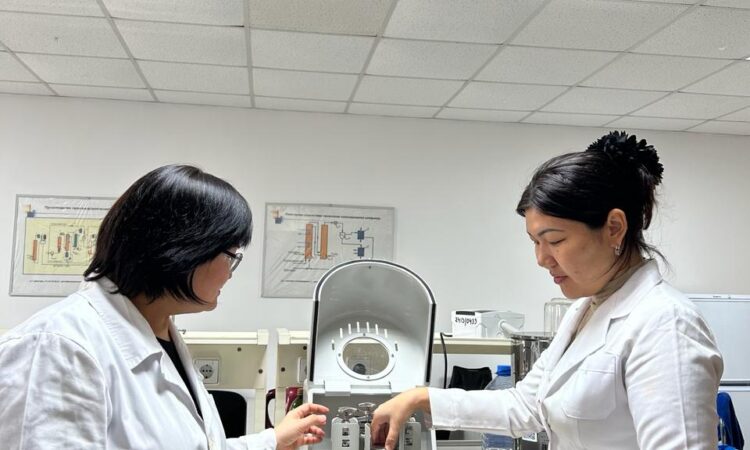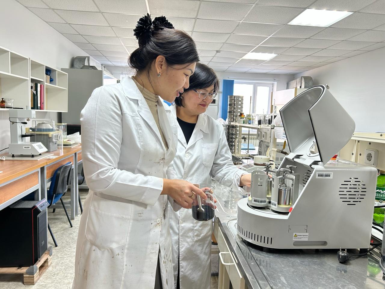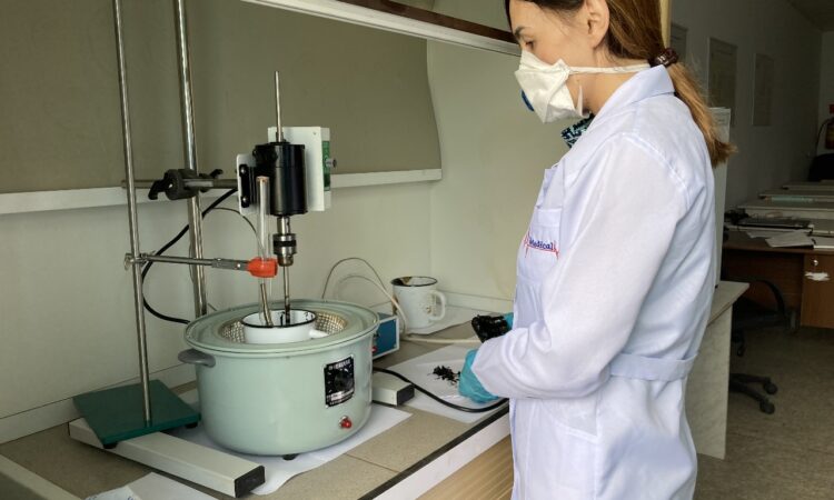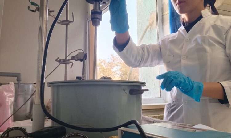 The project is designed to research and develop a technology for modifying the oil of road bitumen with rubber waste for waste processing and improving the physico-chemical characteristics of road bitumen. The members of the research group, including the graduate student of the educational program “Chemical technology of organic substances’ Koichukulova Aktilek, conduct experiments on modifying bitumen with rubber crumbs to determine the optimal parameters.