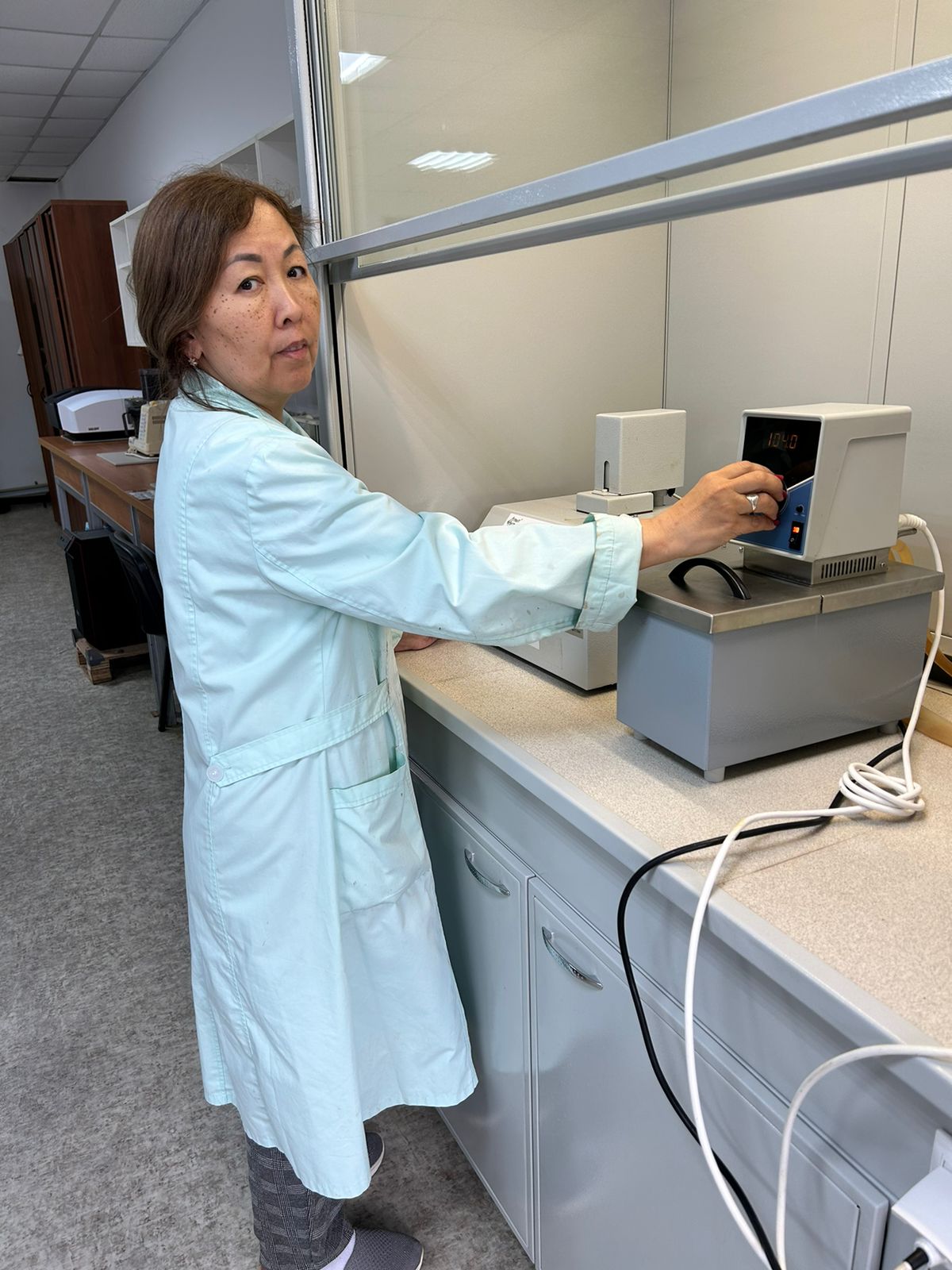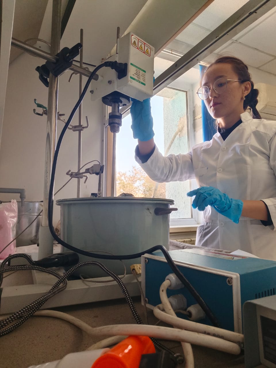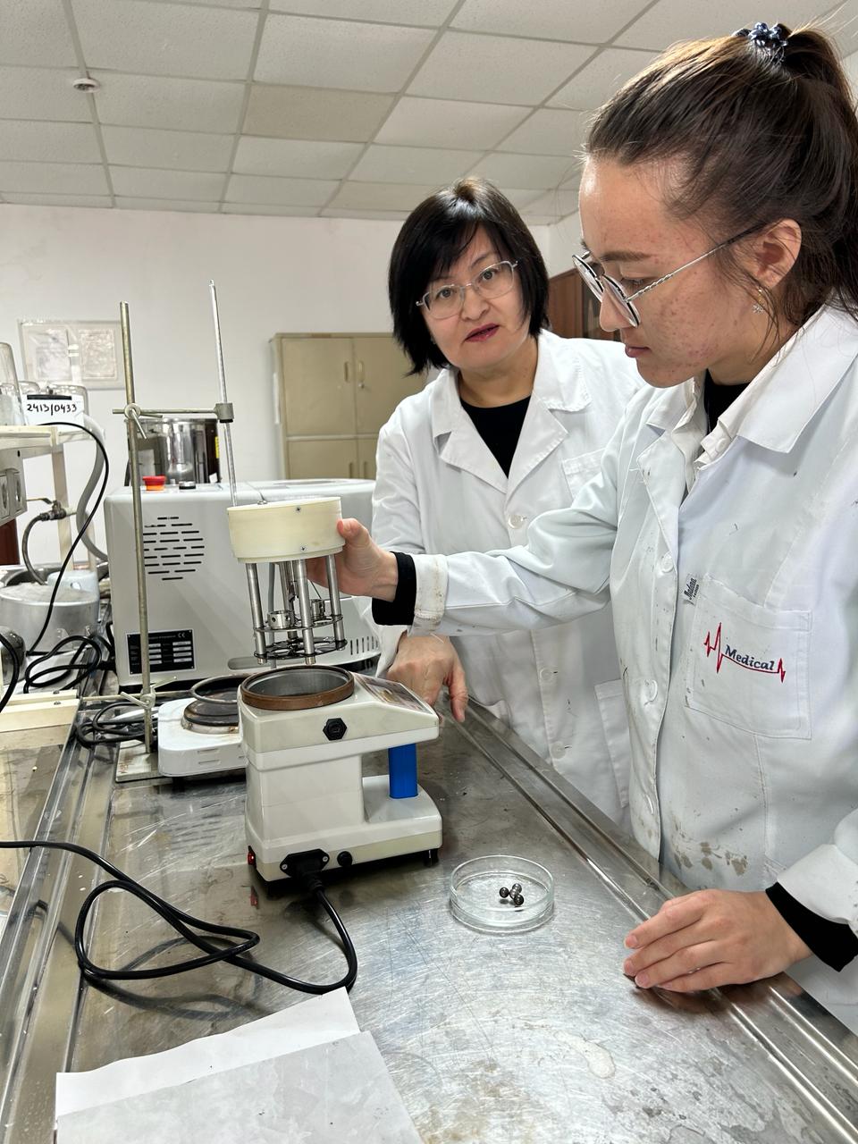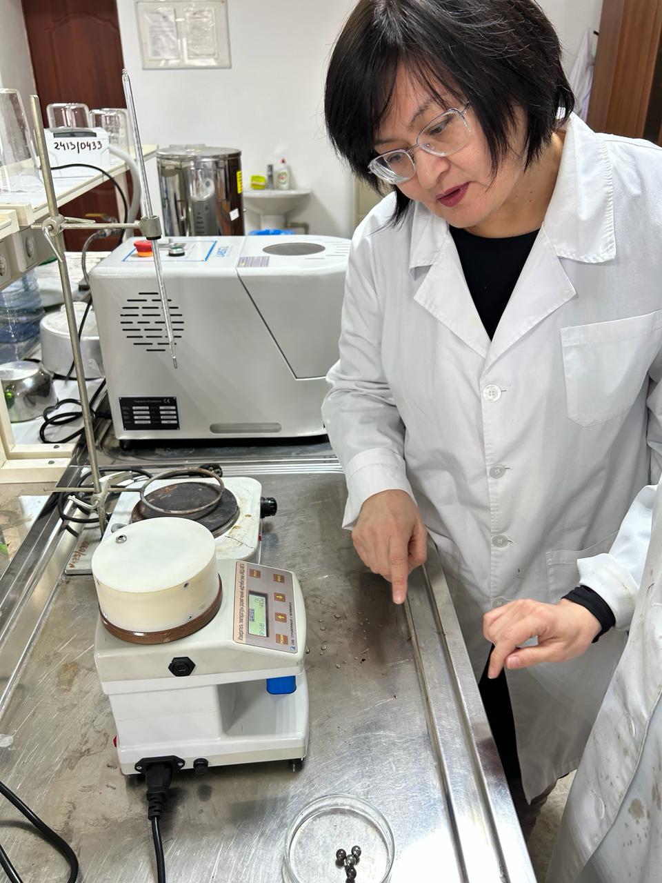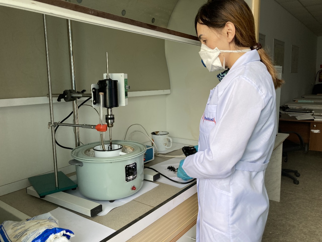The project is designed to research and develop a technology for modifying the oil of road bitumen with rubber waste for waste processing and improving the physico-chemical characteristics of road bitumen. The members of the research group, including the graduate student of the educational program “Chemical technology of organic substances’ Koichukulova Aktilek, conduct experiments on modifying bitumen with rubber crumbs to determine the optimal parameters.
