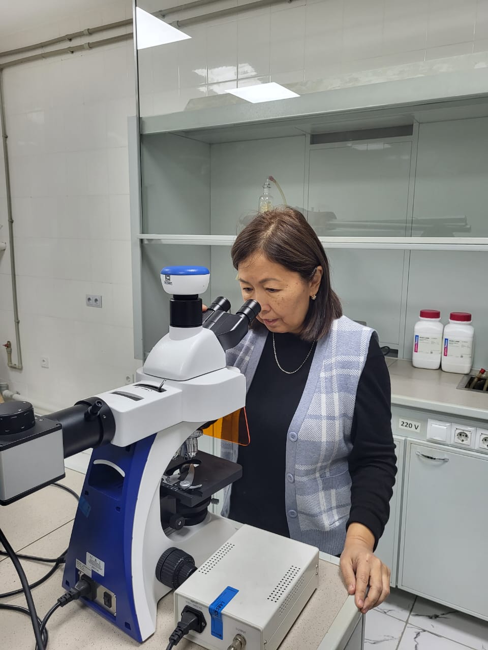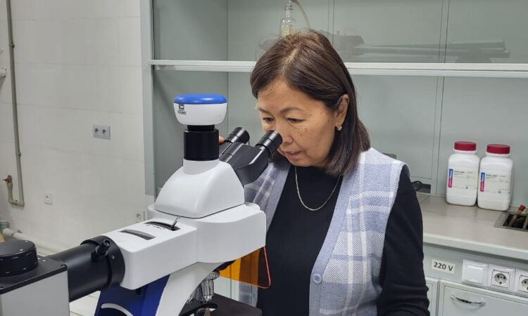 Acting Associate Professor of the Department of Petrochemical Engineering A. Sh. Akkenzheeva in December 2023 was sent to the Institute of Gorenje Problems in Almaty in order to study the structure of samples of rubber-bitumen binders in accordance with the calendar plan of the project “Modification of petroleum bitumen with rubber waste” for 2023. Microimages of modified bitumen samples were taken and a discussion was held on the results of the structure study with a senior researcher at the Institute of Gorenje Problems, a member of the research group Imanbaev E.