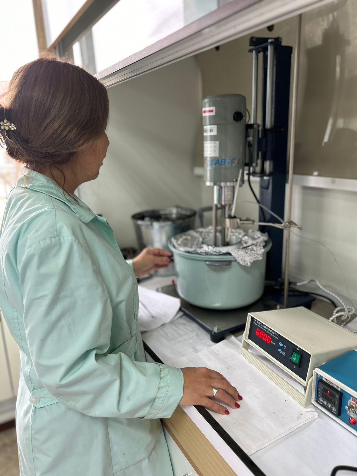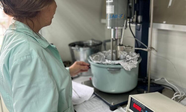 According to the project “Modification of petroleum bitumen with rubber waste”, new equipment was purchased – a shear agitator FLC-IV. The shear agitator is designed for a wide range of applications – mixing, emulsification, homogenization, disintegration and dissolution – with efficiency and versatility incomparable with other machines. The shear agitator is equipped with a touch-screen control with a digital tachometer and an ammeter, a programmable timer. The use of this device will allow solving all the main tasks of determining the effect of devulcanized rubber on the physico-chemical properties of bitumen; identifying the optimal amount of added devulcanized rubber.