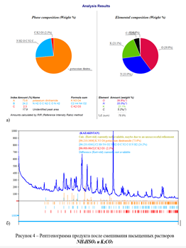 4) NH₄HSO₄ + K₂CO₃ → NH₄KSO₄. — проведен рентгенофазный анализ (РФА) полученного продукта.