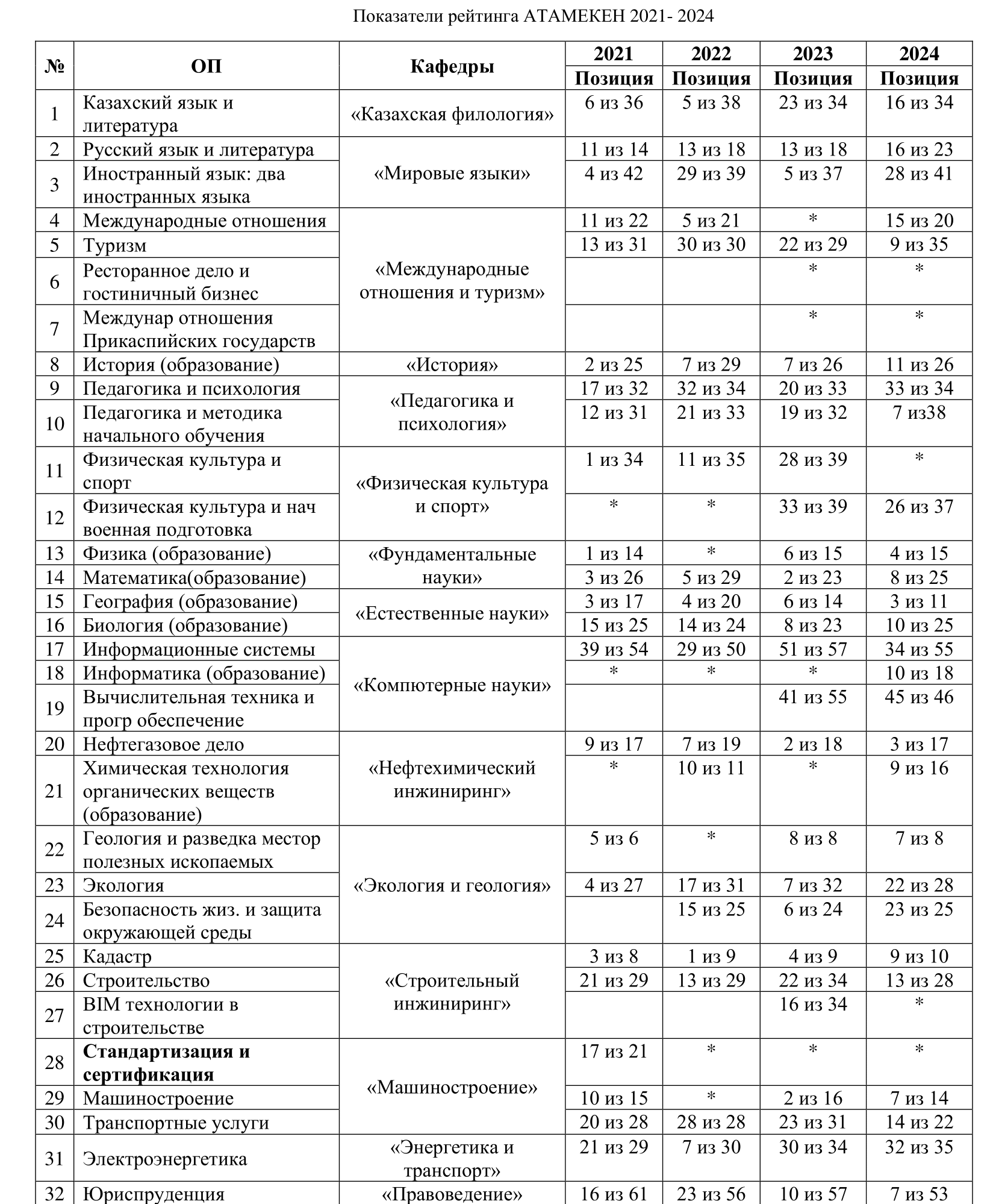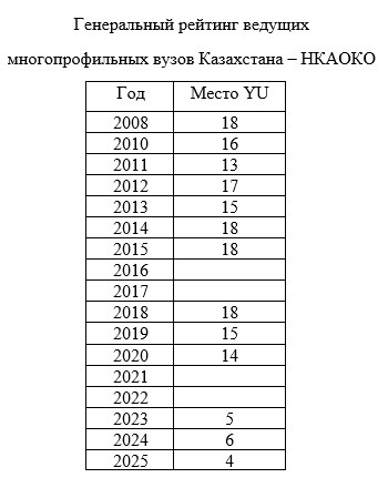 Yessenov University has participated in the QS World University Rankings by Region so far. At present YU aims at taking a part in the 20th edition of the QS World University Rankings features 1,500 institutions across 104 locations and is the only ranking of its kind to emphasise employability and sustainability.