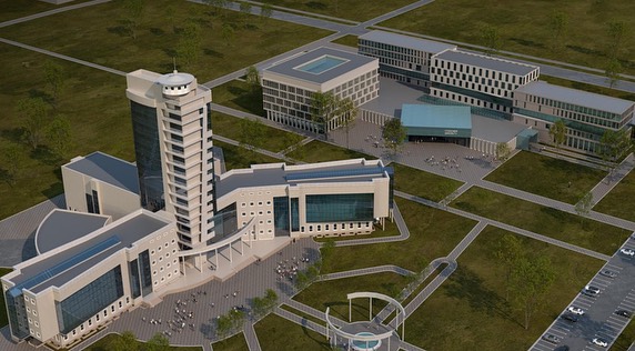 It consists of six pavilions, the numbering of the building’s lecture rooms and classrooms consists of one letter and four signs: the letter is the sign of the pavilion; first and second number – floor number; the third and fourth digits are the numbers of the lecture hall and classrooms. Location: Aktau city, District #32.